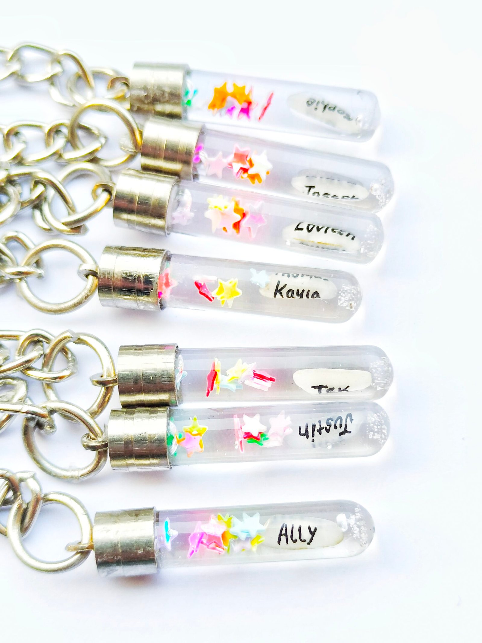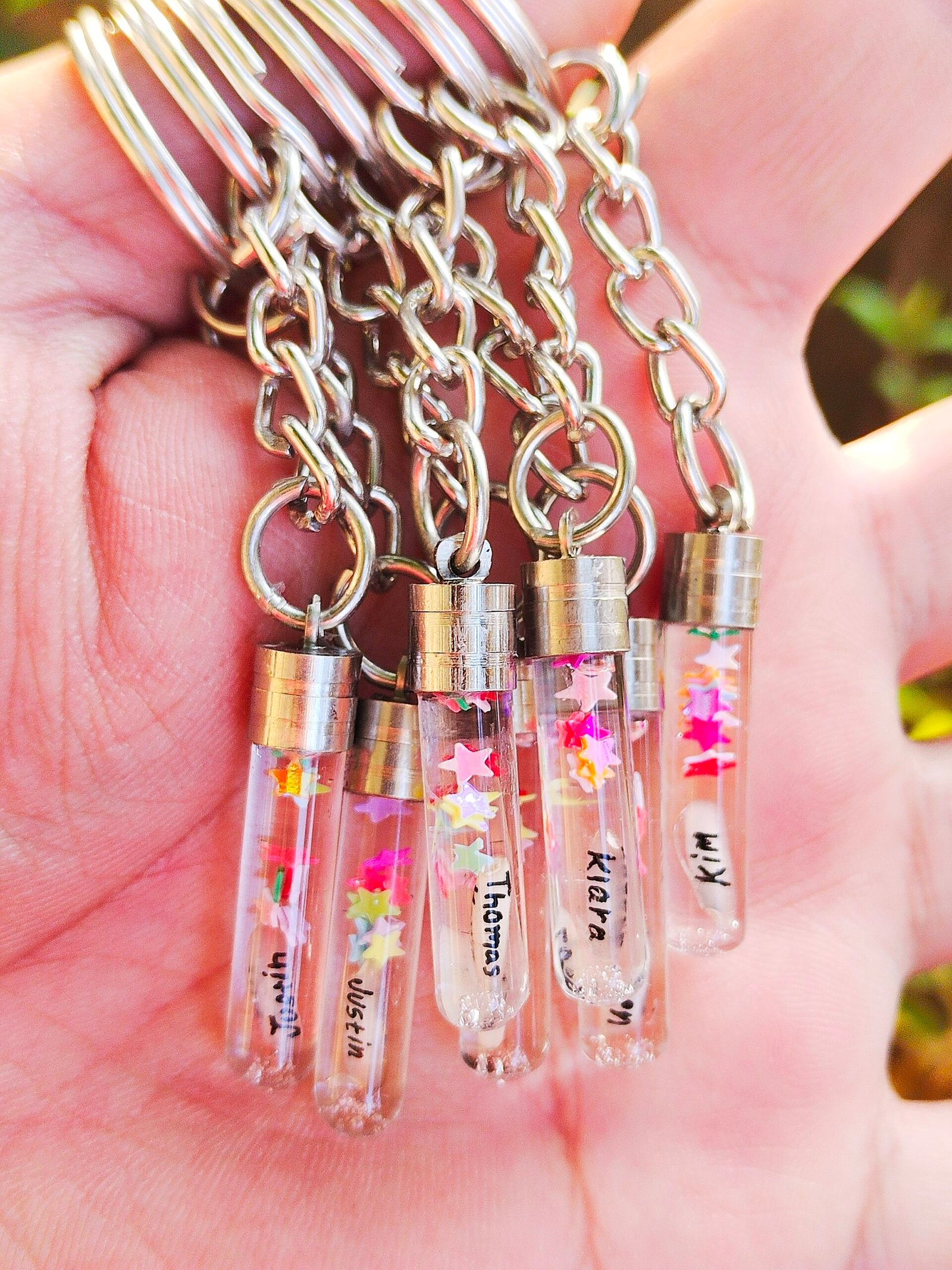 Decoration Preference: Are there any specific details you would like inside the glass tube? (e.g., color of the oil/liquid, type of glitter, small embellishments, etc.)